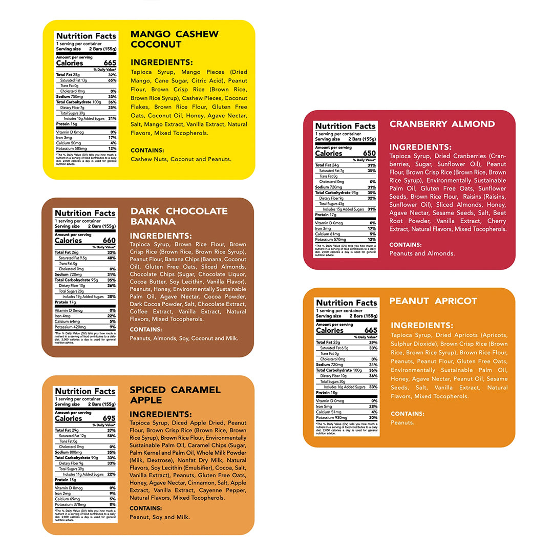 Say goodbye to 200-calorie snack bars. Each Greenbelly Meal comes with two meal bars that pack a hefty 650+ calories and deliver a balanced nutritional profile. Covering over 25% of your Daily Value for six essential nutrients: Calories, Carbs, Protein, Sodium, Fat, and Fiber. Designed to fuel you through long days and big miles on the trail.